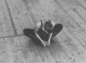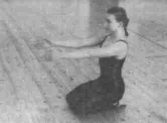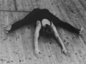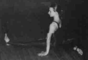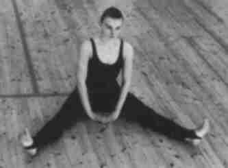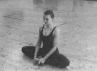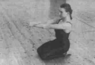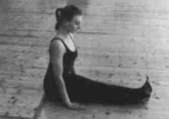 Wichtig ist, daß die Beine gerade sind und die Füße nach hinten gezogen werden; den Rücken dabei gerade halten; man atmet ein und beim Vorbeugen atmet man langsam aus.